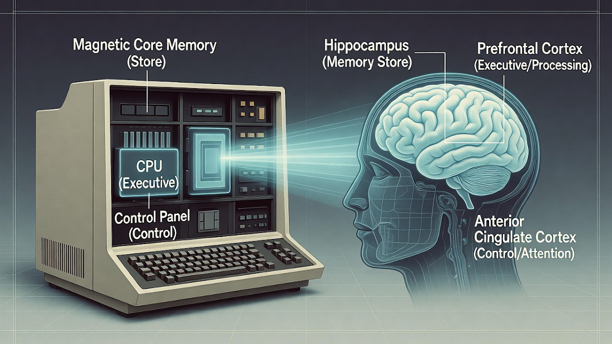 The analogy between human cognition and computer architecture is neither accidental nor superficial. The von Neumann model, which underlies most modern computing systems, reflects a mid twentieth century attempt to formalise intelligence in mechanical terms. In doing so, it produced a structure that mirrors how we understood our own minds: memory, processing, and control operating in disciplined sequence.