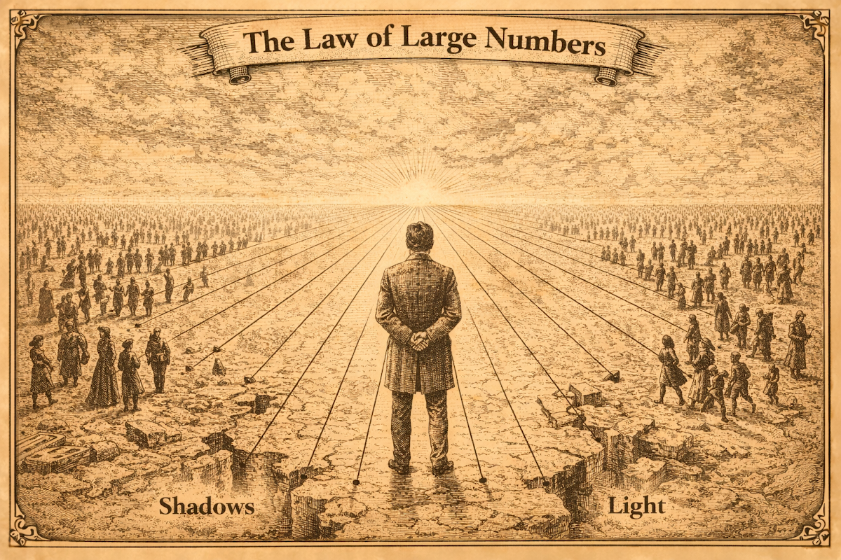 Kolmogorov’s probability theory culminates in the law of large numbers: in the long run, empirical frequencies converge to true probabilities. Short-run variation gives way to long-run stability.